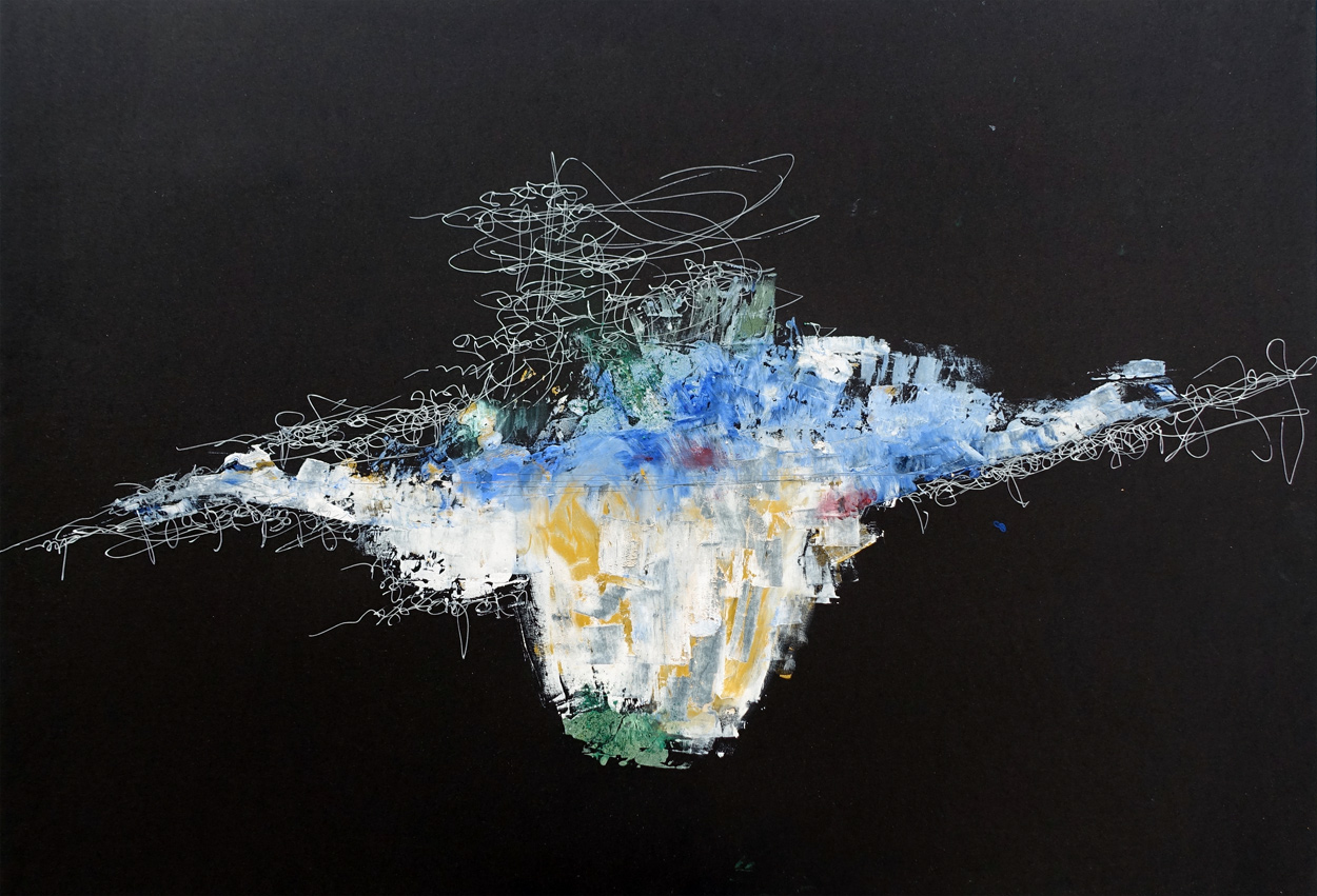 Monotypie auf schwarzen Karton - Öldruckfarben/Kreide40 x 30 cm